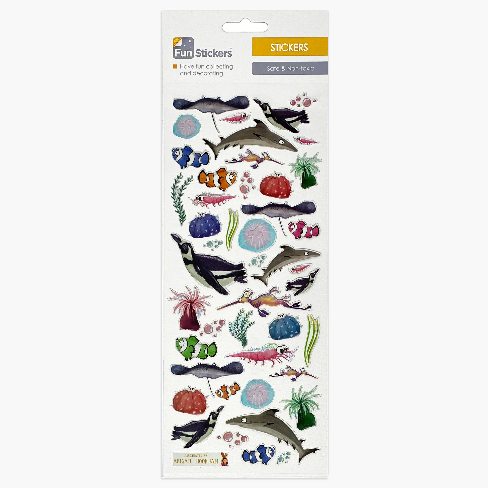 Fun stickers Undersea World Animals, Wildlife, Sea Life, Sharks, Stingrays, Penguins, Fish, Clownfish, Bubbles, Coral, Seaweed, Jellyfish, Sea Urchins, Shrimp