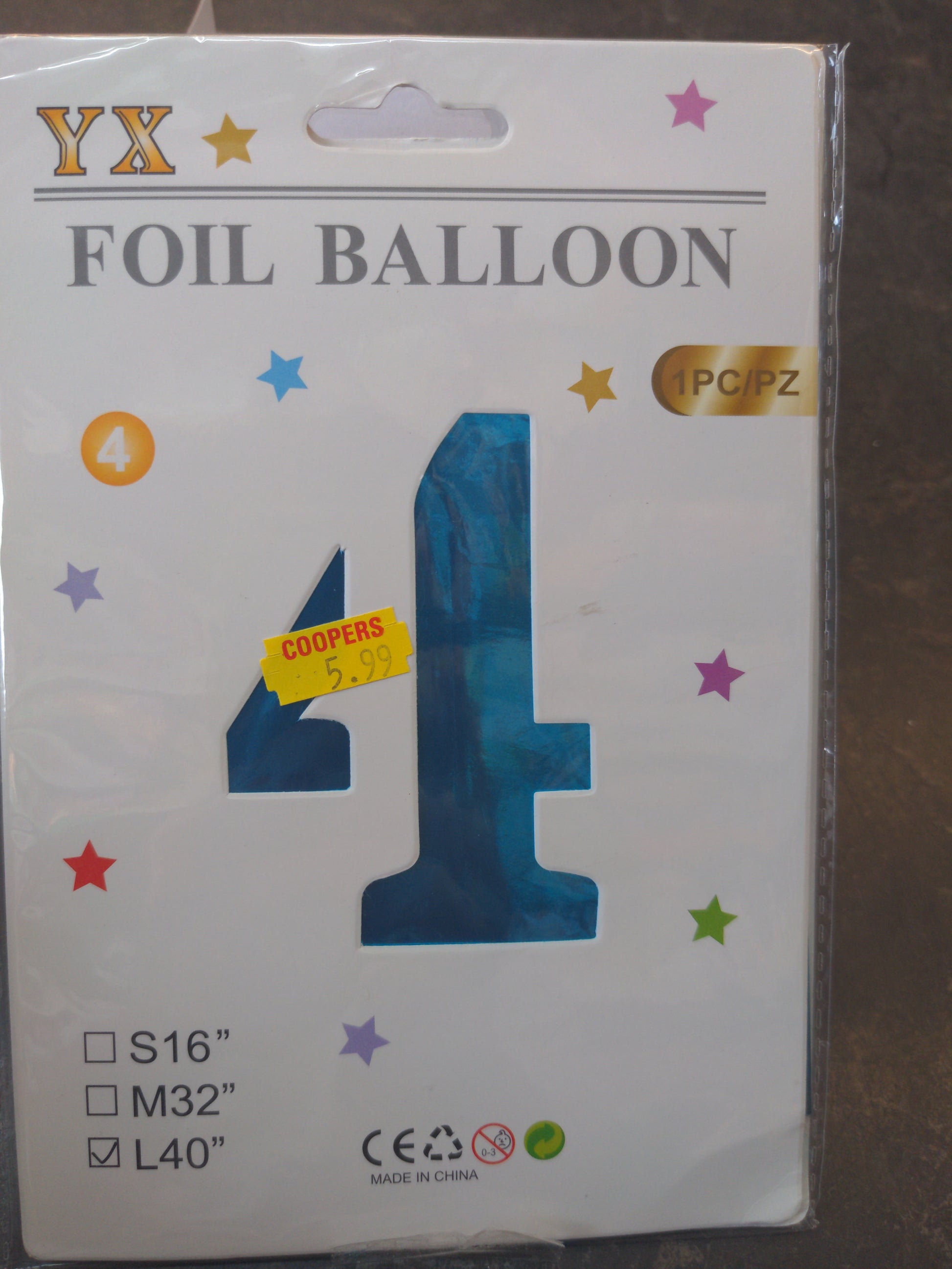 Giant No 4 helium/Air Foil Balloon L40in Blue