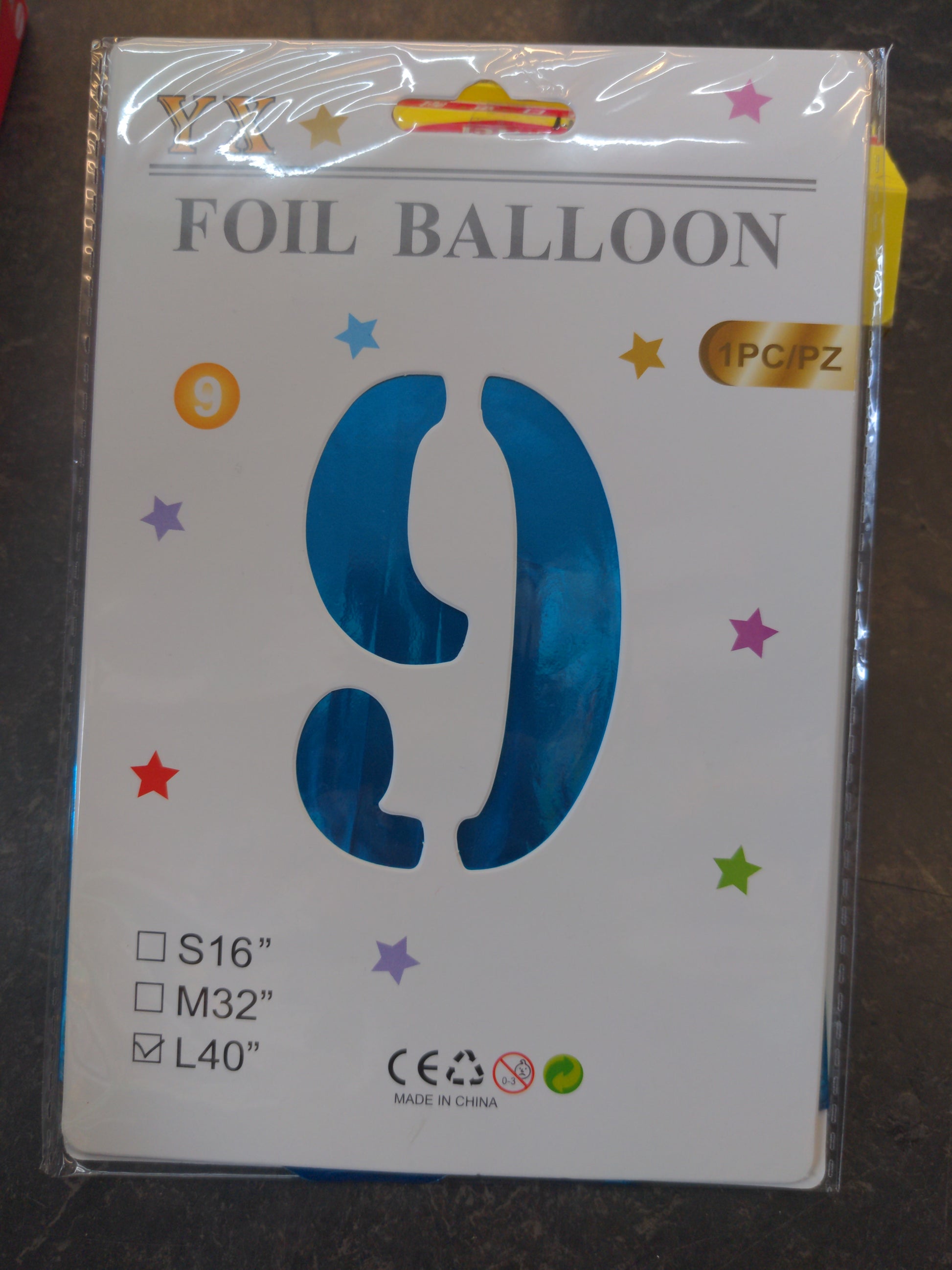 Giant No 9 Blue Helium/Air foil Balloon L40 "