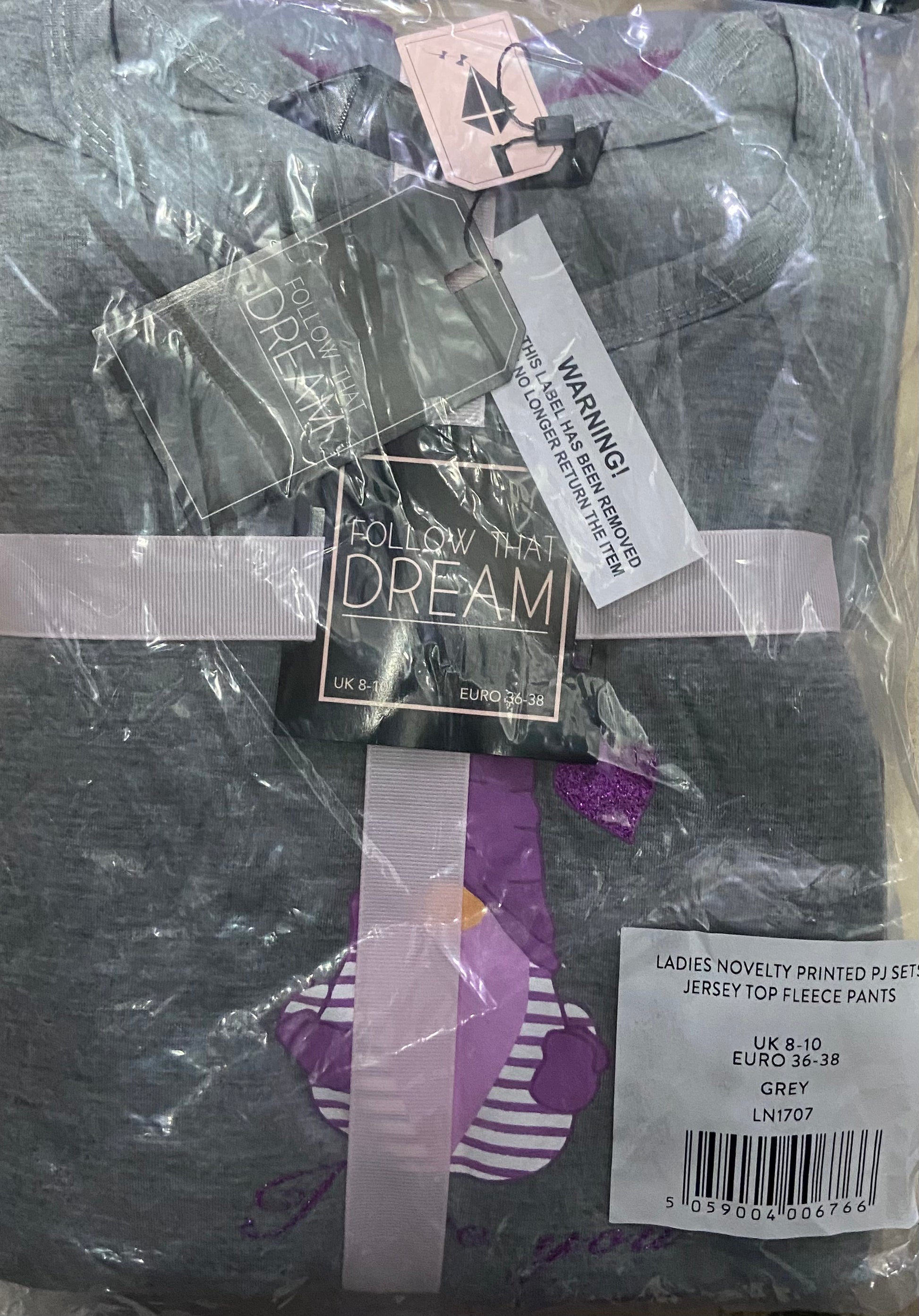 LADIES 8-10 UK NOVELTY PRINTED PJ SETS JERSEY TOP FLEECE PANTS GREY