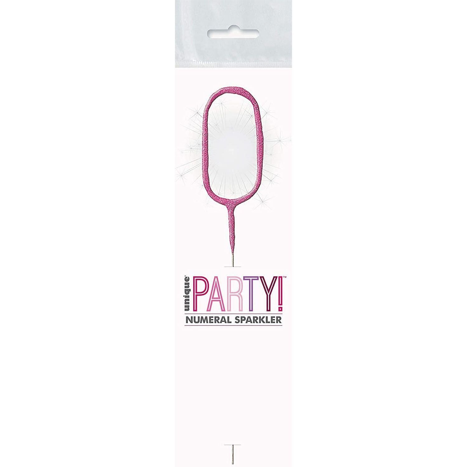 Unique Party Number 0 Birthday Cake Sparkler, Pink